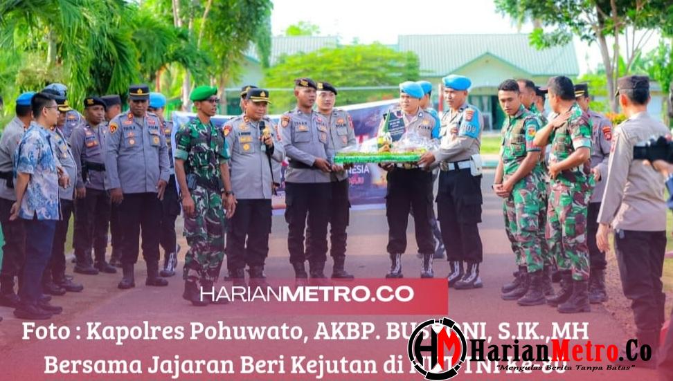 Artikel Bentuk Soliditas, Kapolres Pohuwato Bersama Jajaran Beri Kejutan Untuk Kodim 1313/Pohuwato di HUT TNI Ke-80 pertama kali tampil pada HARIAN METRO.