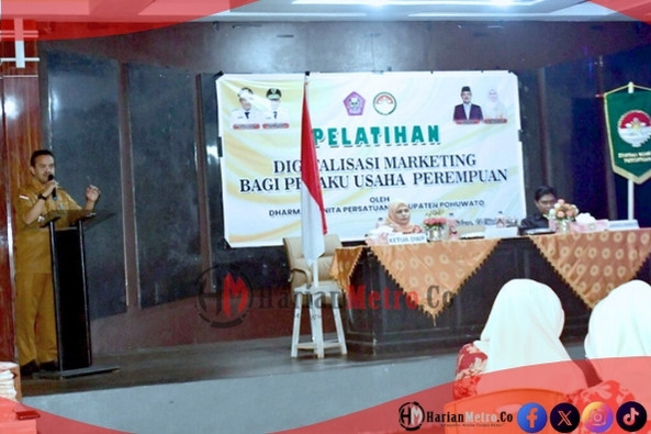 HarianMetro.co, POHUWATO — Sekretaris Daerah (Sekda) Kabupaten Pohuwato, Iskandar Datau, secara resmi membuka kegiatan Pelatihan Digitalisasi Marketing bagi Pelaku Usaha Perempuan, yang diselenggarakan oleh Dharma Wanita Persatuan (DWP) Kabupaten Pohuwato, Selasa (14/10/2025), bertempat di Aula Dinas Pekerjaan Umum dan Penataan Ruang (PUPR) Pohuwato.