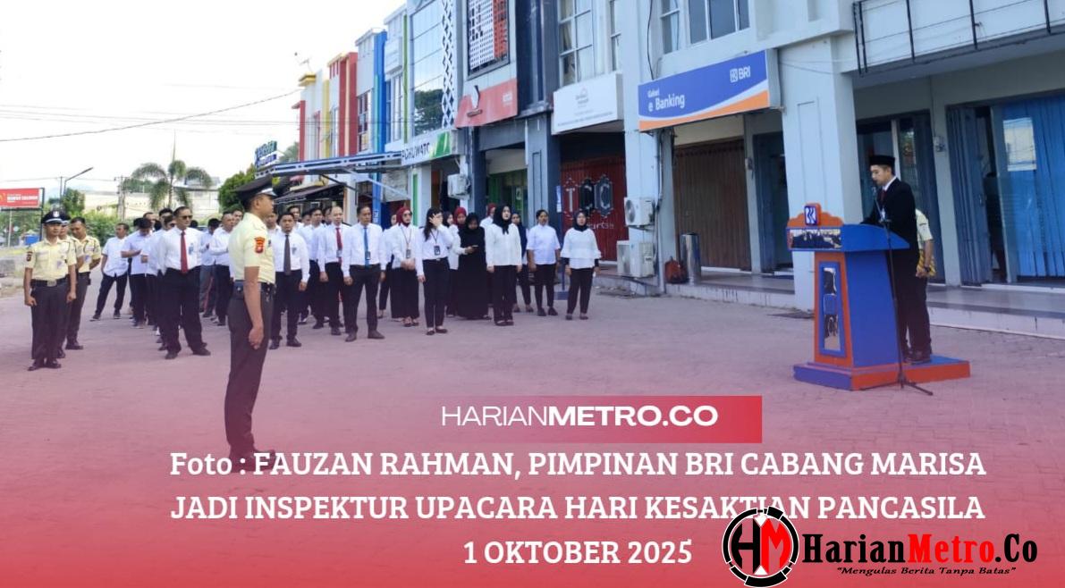 HarianMetro.co, POHUWATO – Momentum Peringatan Hari Kesaktian Pancasila pada 1 Oktober 2025. Bank Rakyat Indonesia (BRI) Cabang Marisa gelar upacara bersama yang berlangsung di halaman kantor BRI Cabang Marisa.