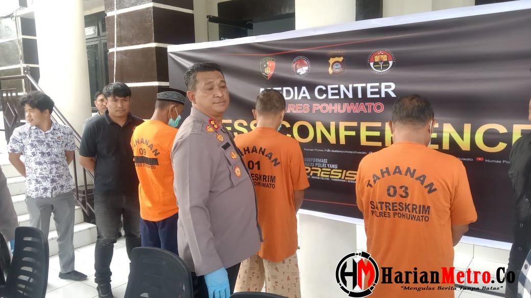 Kapolres Pohuwato AKBP Winarno, S.H., S.IK, mengungkapkan kasus ini dalam konferensi pers, di Mapolres Pohuwato, Kamis sore (13/02/2025).