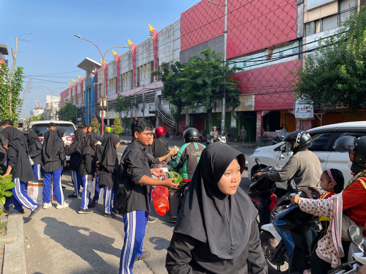 Tidak hanya olahraga, kegiatan ini juga menjadi momentum untuk menanamkan kepedulian sosial, karena setiap siswa diajak membawa dan membagikan nasi bungkus kepada warga di depan sekolah.
